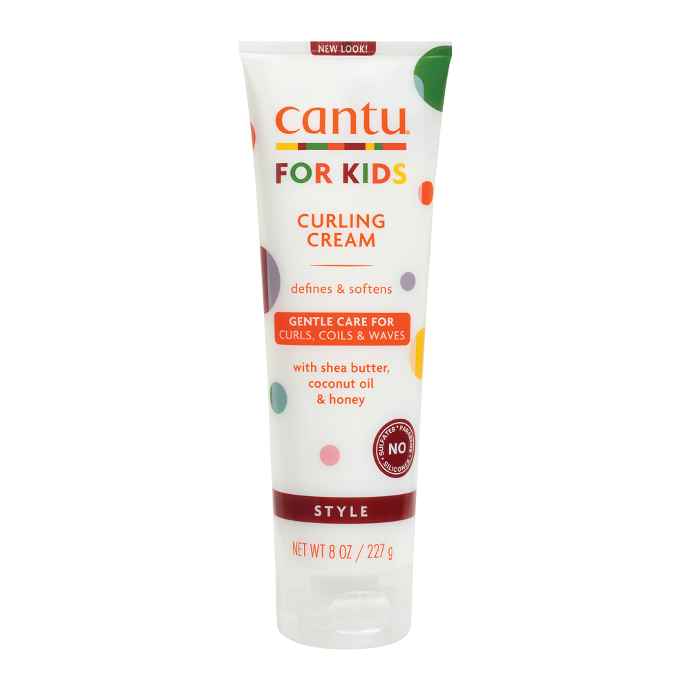 Crème coiffante Cantu pour enfants avec beurre de karité et huile de coco. Idéale pour boucles, ondulations et frisottis. Adoucit et définit les cheveux délicatement. Parfaite pour des styles naturels.