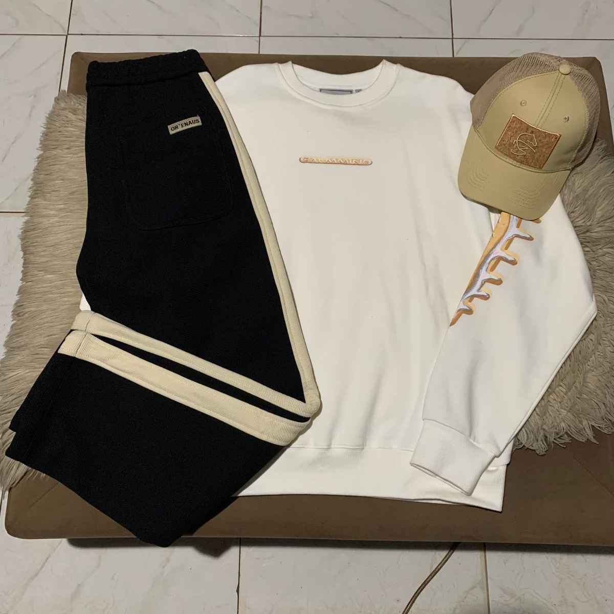 Cap, sweater, Pants