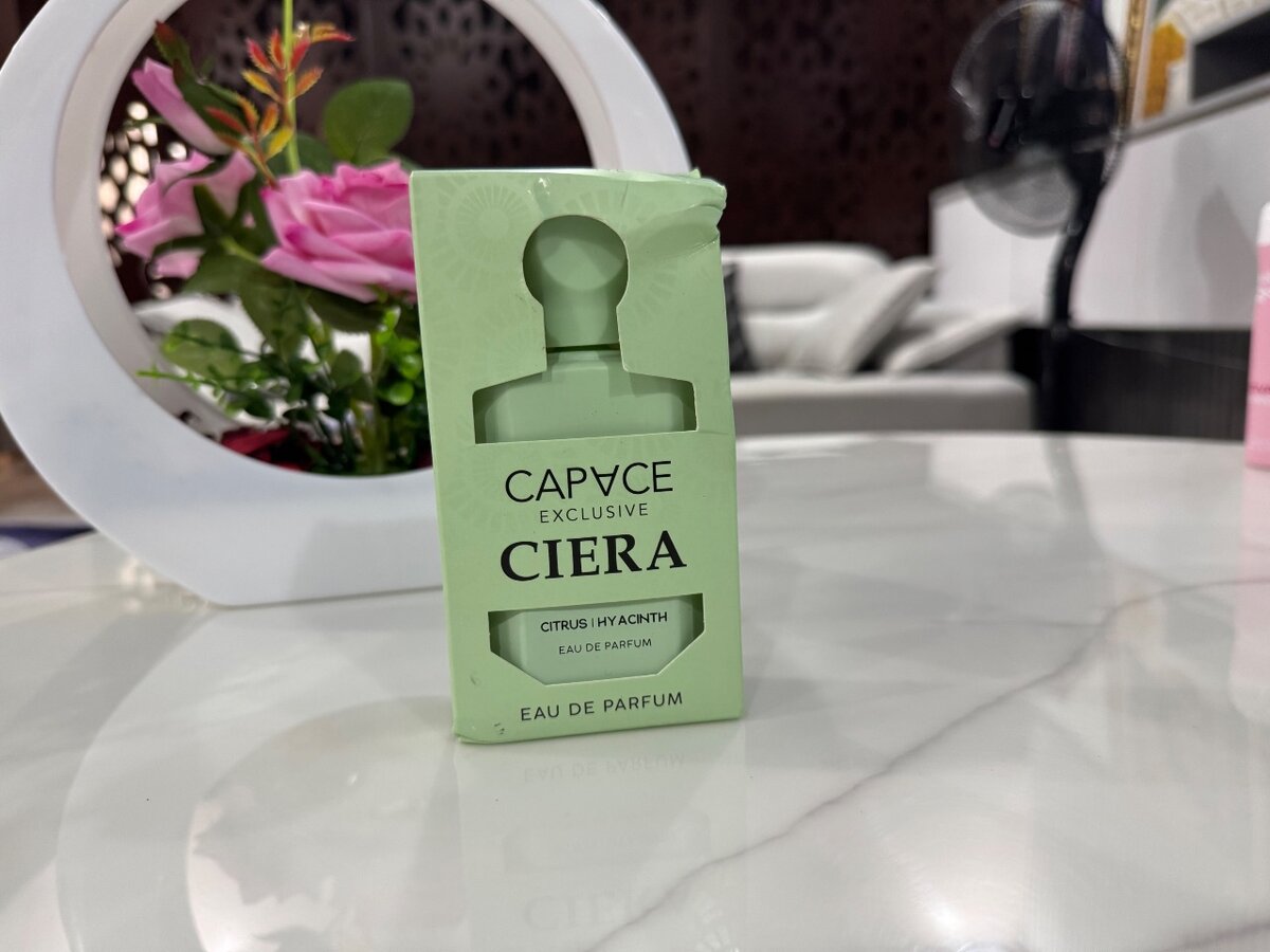 Découvrez l'élégance de CAPACE Ciera, une eau de parfum envoûtante avec des notes de citrus et jacinthe. Parfaite pour toutes vos occasions spéciales.