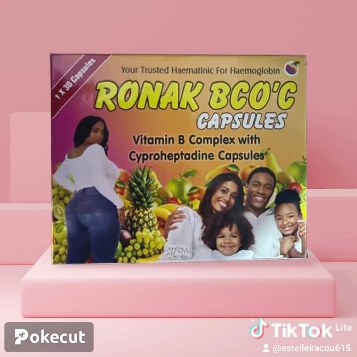 Boostez votre énergie avec Ronak BCO'C, des capsules enrichies en Vitamine B et Cyproheptadine pour soutenir votre hémoglobine.
