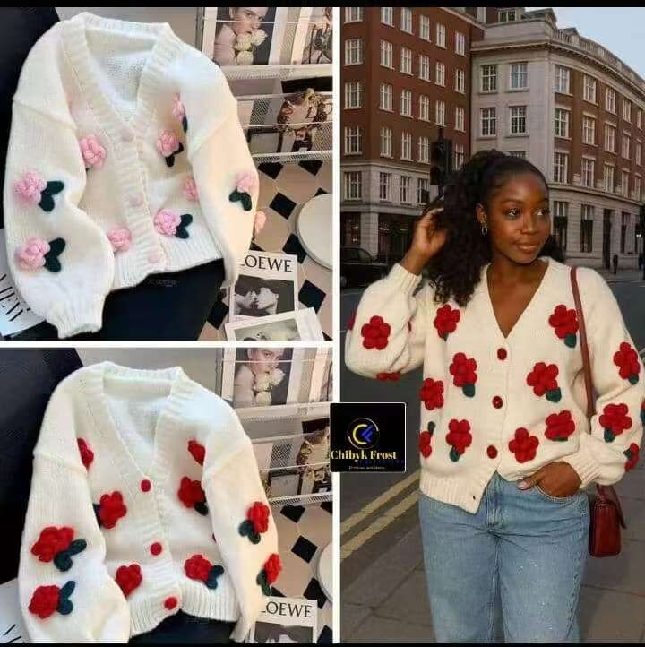 Soyez éblouissante avec ce cardigan en tricot orné de fleurs colorées. Parfait pour ajouter une touche élégante à vos tenues décontractées. Confortable et tendance, c'est le choix idéal pour les journées fraîches d'automne ou de printemps. S'associe bien avec des jeans ou des jupes pour un look chic et décontracté.