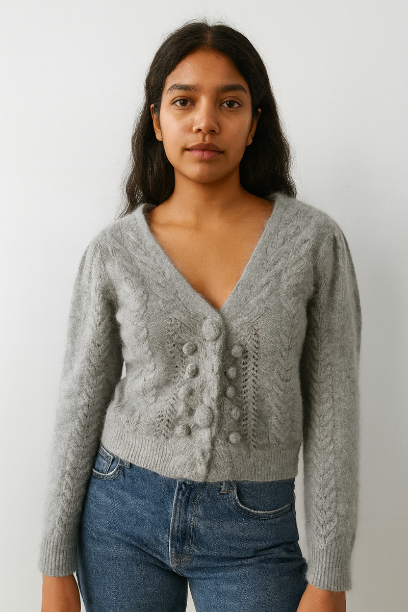 Découvrez ce cardigan gris pour femme, alliant confort et style grâce à sa coupe ajustée et son design élégant. Idéal pour les journées fraîches, il s'adapte à toutes vos tenues pour un look chic et moderne. Un incontournable de votre garde-robe!
