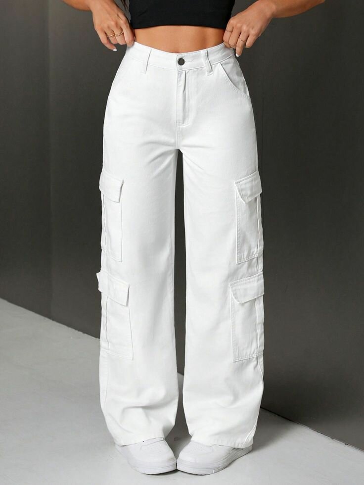 Ces pantalons cargo blancs sont parfaits pour un look décontracté et tendance. Conçus pour les femmes, ils offrent un confort optimal grâce à leur coupe ample et leur matière confortable. Les multiples poches latérales sont pratiques pour transporter vos essentiels au quotidien. Idéal pour les sorties en ville ou les activités décontractées.