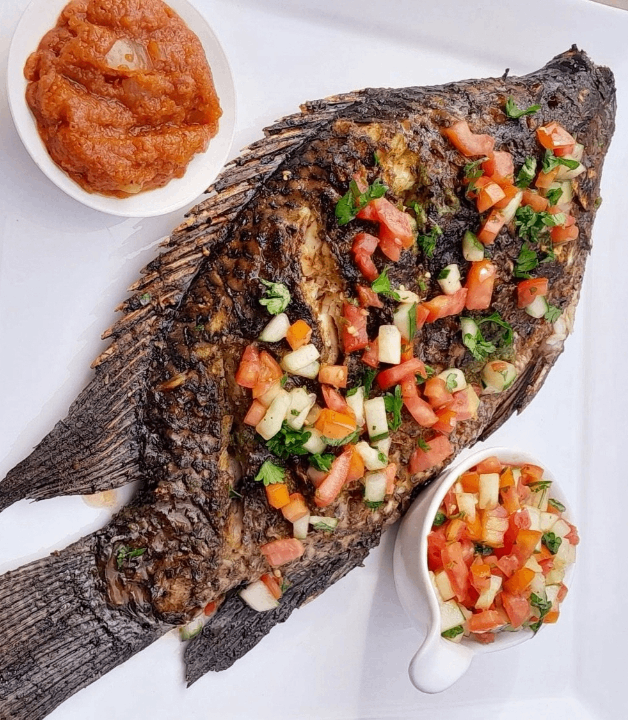 Goûtez à notre carpe braisée, préparée avec des épices délicates du Cameroun, accompagnée de légumes frais. Parfaite pour un dîner sain et gourmand, elle ravira vos papilles avec des saveurs exquises et authentiques.