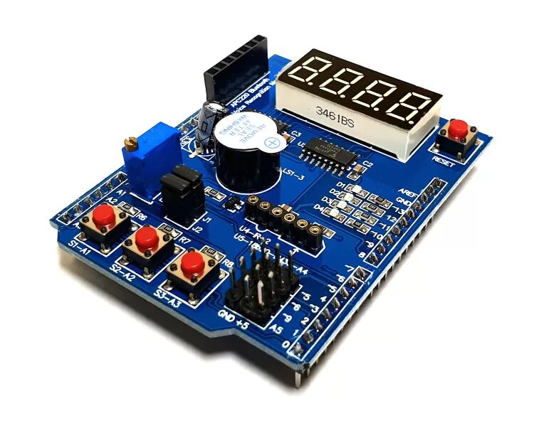 Carte dextension Arduino Mega 2560 avec reconnaissance vocale: Cette carte dextension puissante et polyvalente est conçue pour étendre les capacités de votre Arduino Mega 2560. Elle intègre une variété de composants, notamment des entrées/sorties numériques et analogiques, des ports série, un module de reconnaissance vocale, et des boutons poussoirs. Idéale pour les projets de robotique, dautomatisation domestique et de prototypage rapide.