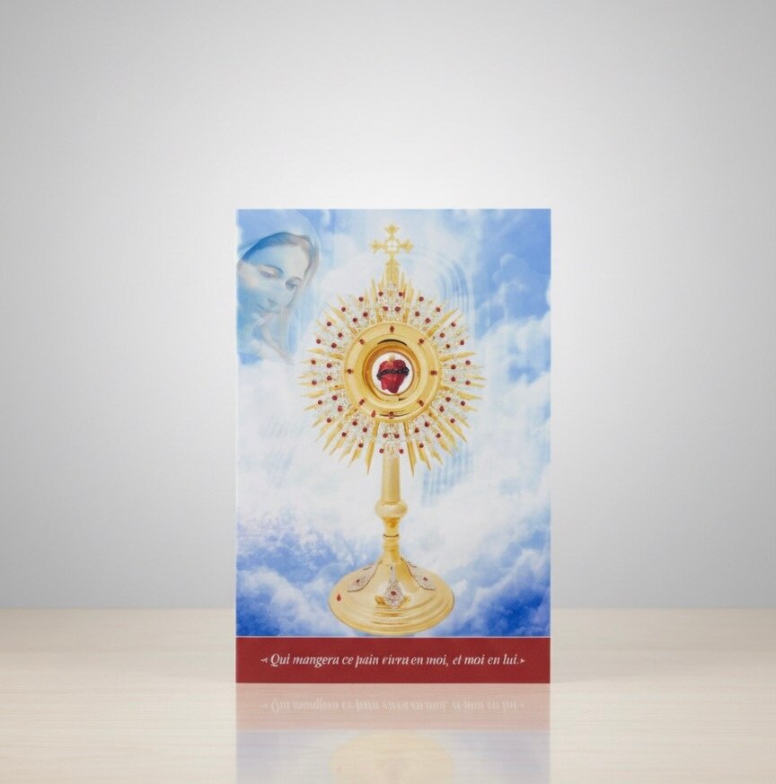 Découvrez notre tableau avec motif d'exposition eucharistique, idéale pour accompagner vos prières et moments de méditation. Parfaite pour les cadeaux ou pour renforcer votre dévotion personnelle. Format A4