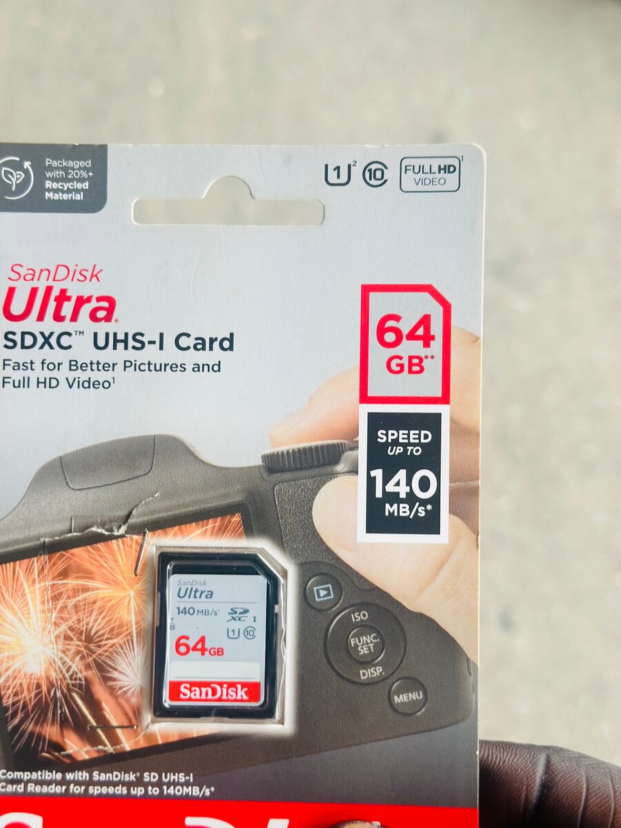 Optez pour la carte SDXC SanDisk Ultra 64GB UHS-I pour des photos et vidéos Full HD exceptionnelles. Avec une vitesse de transfert jusqu'à 140 MB/s, capturez vos moments préférés avec facilité et rapidité. Idéale pour les photographes amateurs et professionnels recherchant performance et fiabilité.