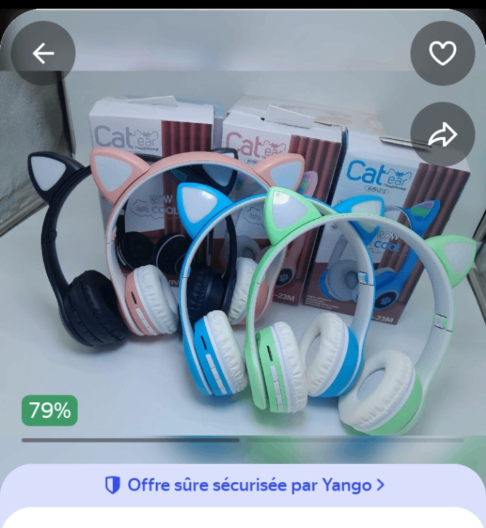Casque Écouteurs sans Fil Oreilles Lumineuses