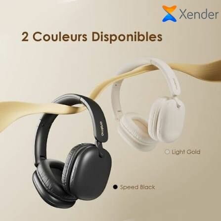 Découvrez les casques audio Xender sans fil, disponibles en noir et or. Profitez d'un son exceptionnel et d'une grande confortabilité. Idéal pour la musique, les appels et les jeux.