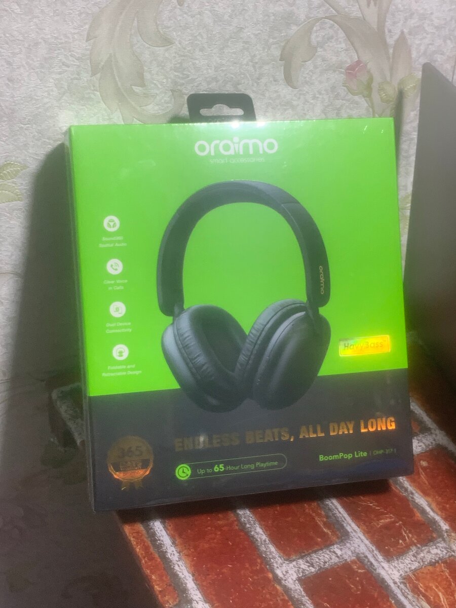 Profitez d'un son immersif et d'une autonomie prolongée avec le casque Bluetooth Oraimo BoomPop. Idéal pour les audiophiles, il offre confort et qualité sonore pour une écoute sans interruption. Parfait pour les voyages, le sport ou le quotidien. Avec son design ergonomique et ses coussinets doux, il garantit une utilisation agréable toute la journée.