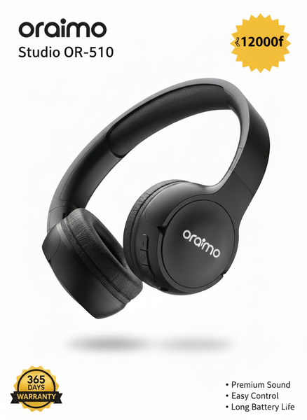 Profitez de 65 heures de musique sans interruption avec le casque Bluetooth Oraimo. Conçu pour le confort, il offre un son puissant et clair grâce à sa technologie avancée. Idéal pour les longues sessions d'écoute, voyages, et télétravail. Inclut câbles AUX et USB-C pour une connectivité étendue. Achetez-le pour une expérience audio exceptionnelle.