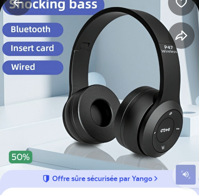 Découvrez le Casque Bluetooth P47 : un son impressionnant avec basses puissantes. Profitez de la liberté sans fil ou optez pour le mode filaire selon vos besoins. Insérez une carte pour écouter votre musique préférée partout. Conçu pour le confort avec des coussinets doux, c'est l'accessoire parfait pour les amateurs de musique en déplacement.