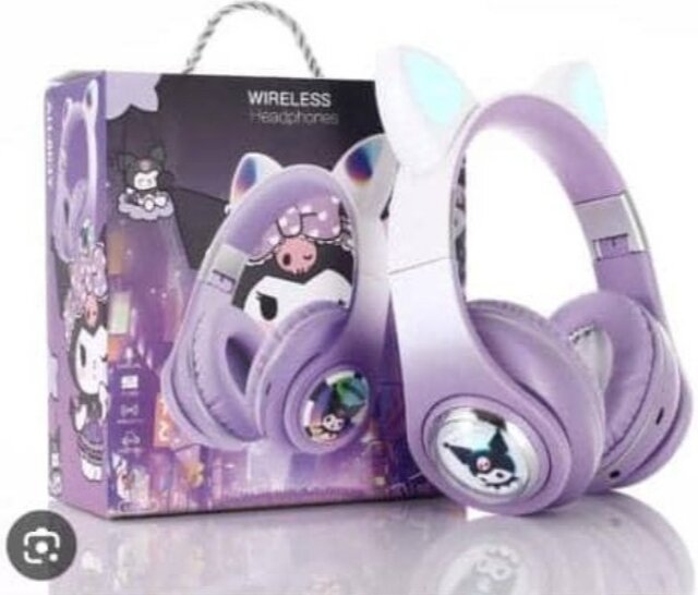 Casque sans fil violet avec motif kawaii, idéal pour les enfants et adolescents. Oreilles lumineuses divertissantes, son clair et connexion Bluetooth facile. Parfait pour écouter de la musique ou des vidéos.