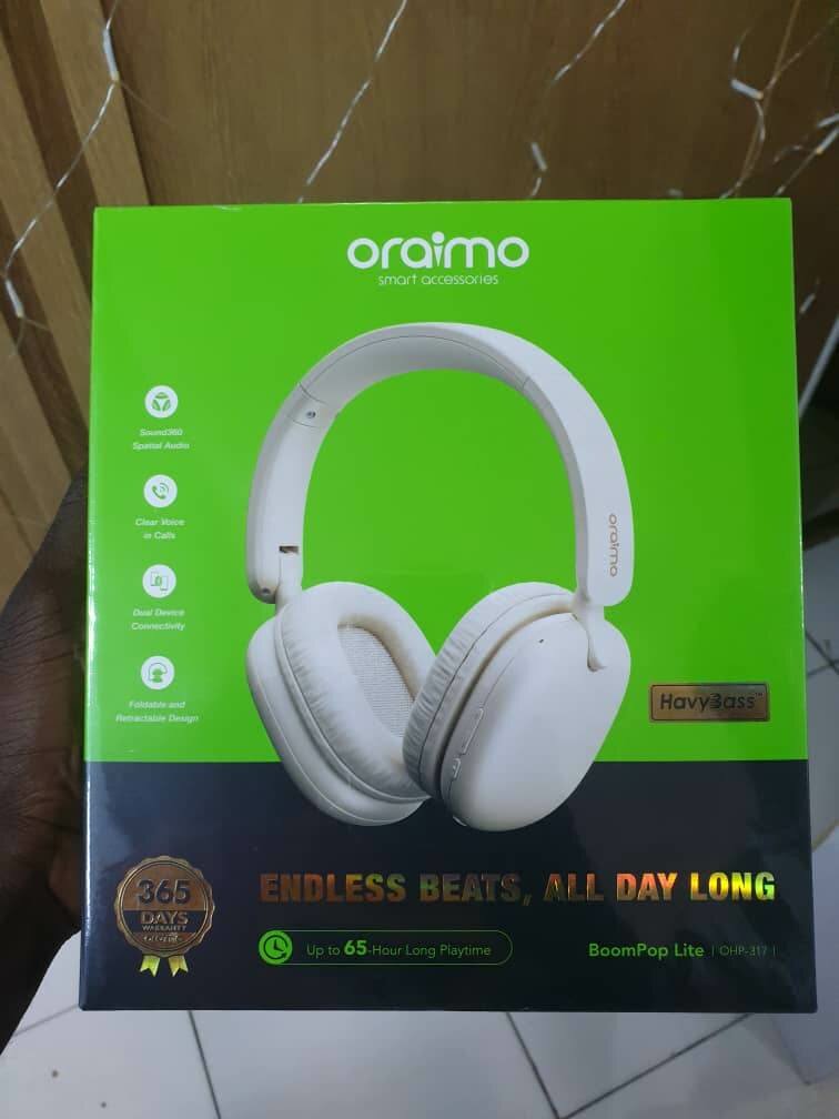 Profitez d'un son puissant avec le casque sans fil Oraimo HavyBass. Jusqu'à 65 heures d'autonomie, design confortable et Bluetooth 5.0 pour une connexion stable. Parfait pour la musique et les appels, à la maison ou en déplacement.
