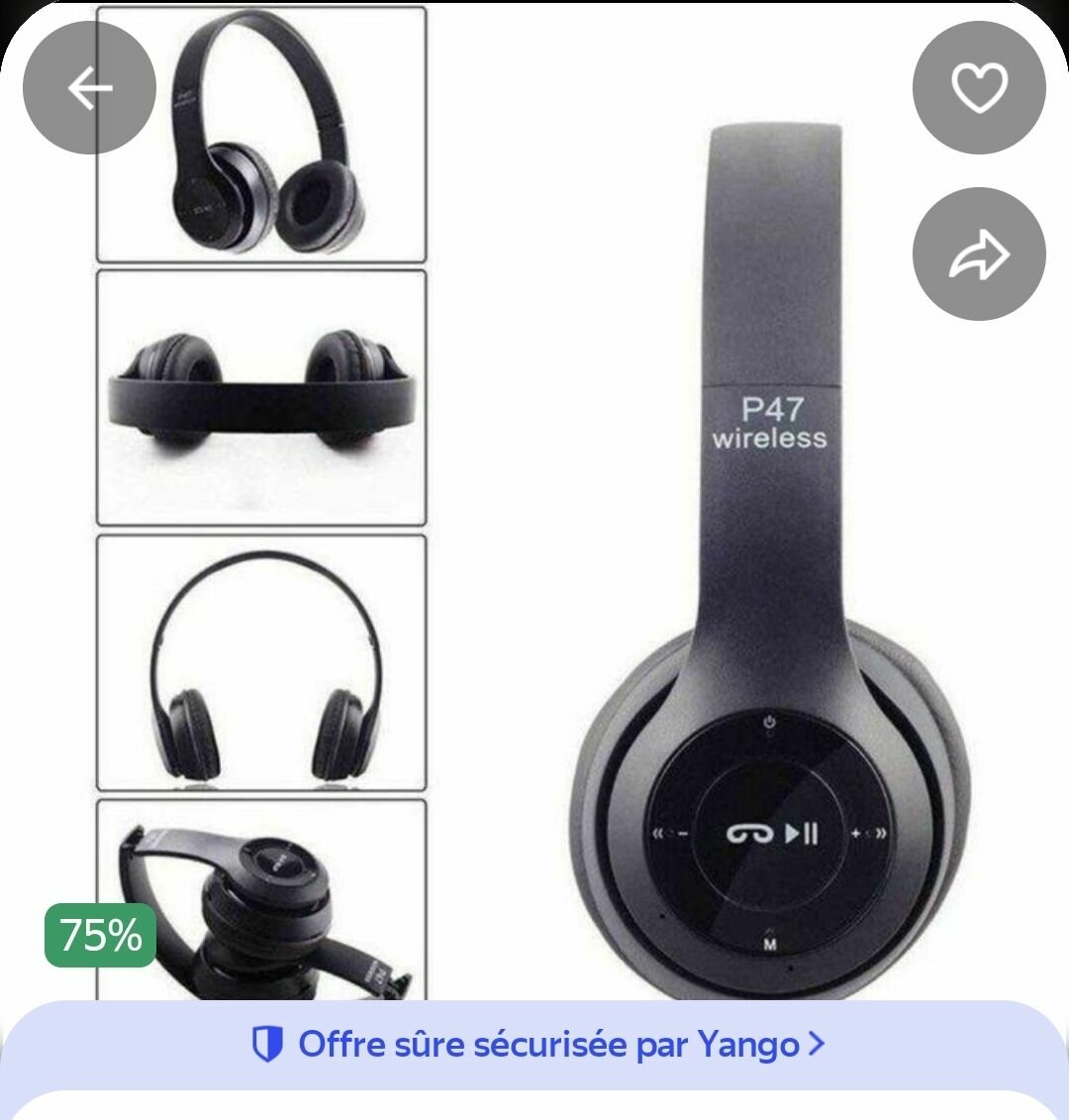 Découvrez le casque sans fil P47, idéal pour écouter de la musique ou passer des appels en mode mains libres. Léger et confortable, il offre une qualité sonore exceptionnelle avec connectivité Bluetooth.
