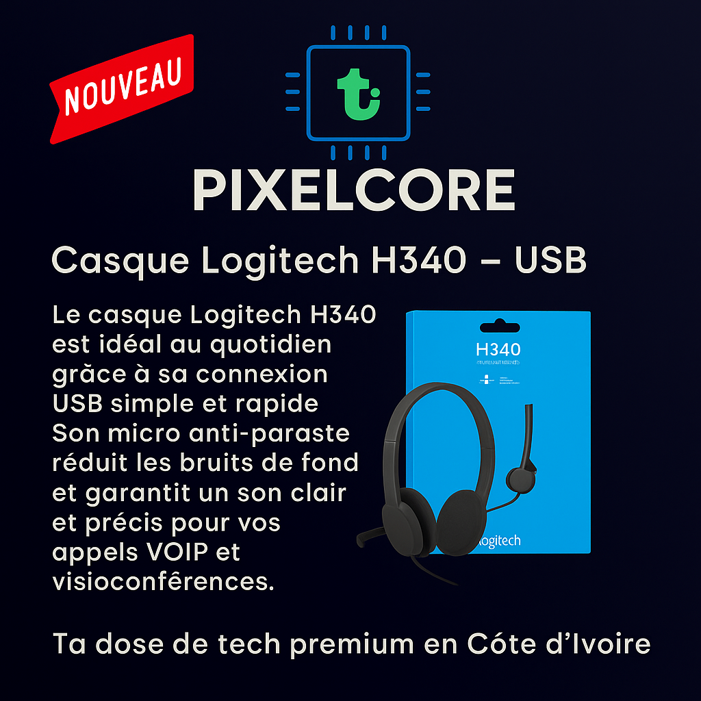 Découvrez le casque Logitech H340 : connexion USB rapide, micro anti-parasite pour un son clair en appels VOIP et visioconférences. Idéal pour le quotidien.
