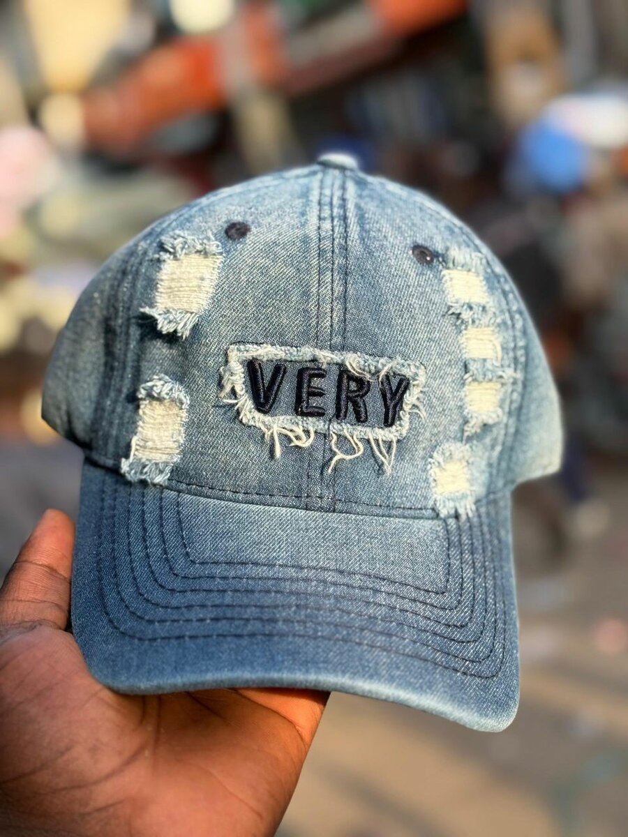 Casquette en jean déchirée