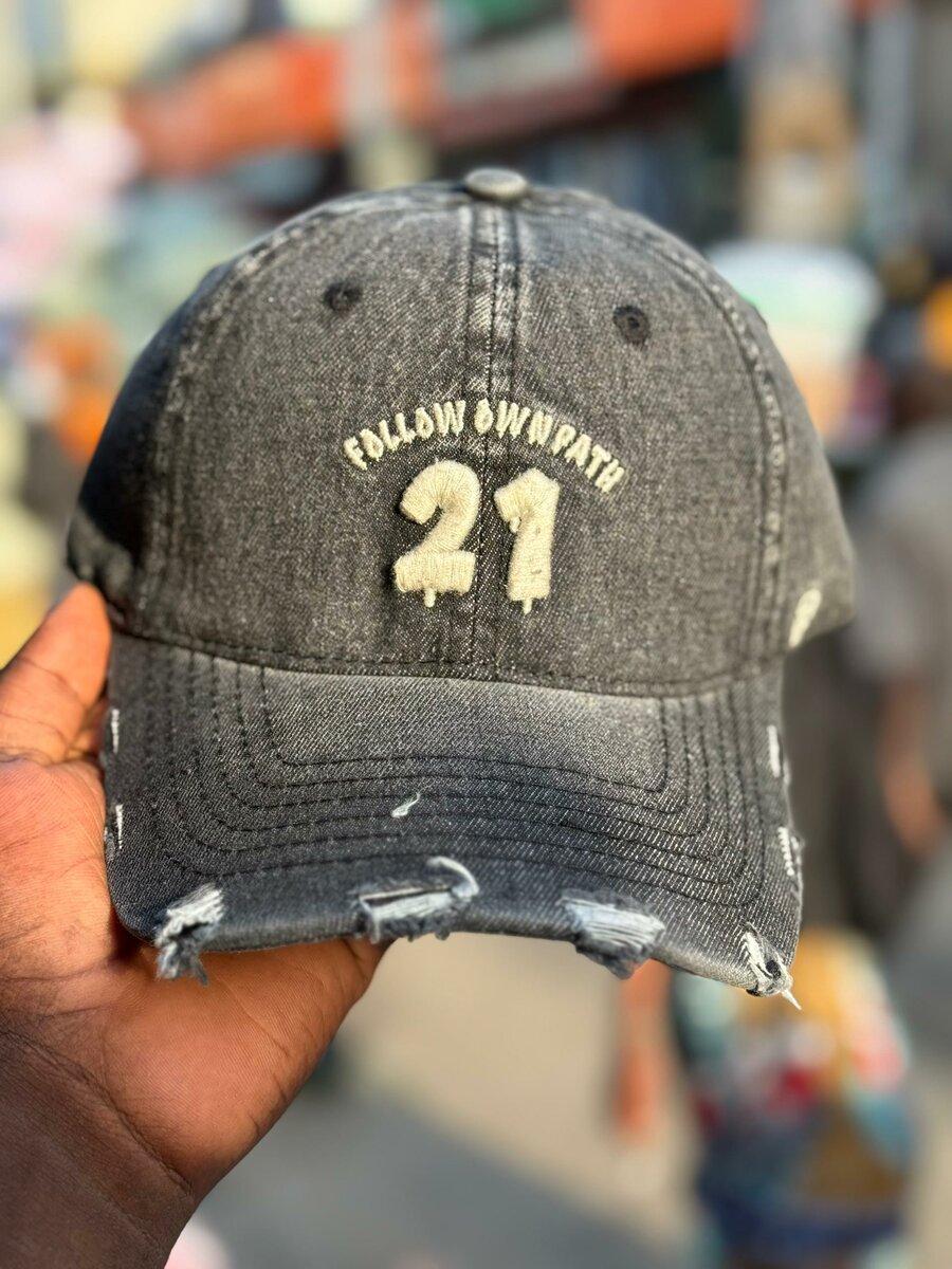 Découvrez notre casquette en jean décontractée, idéale pour un style urbain et tendance. Avec son design "Follow Own Path" et son numéro 21, elle apporte une touche unique à votre look. Parfaite pour les sorties en plein air ou les tenues décontractées.