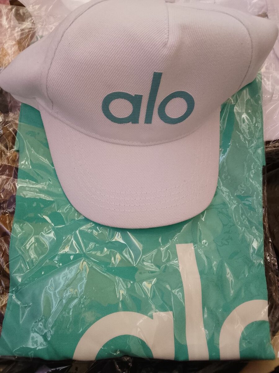 Ensemble élégant Alo comprenant une casquette et un t-shirt assortis. Idéal pour le sport ou une tenue décontractée.