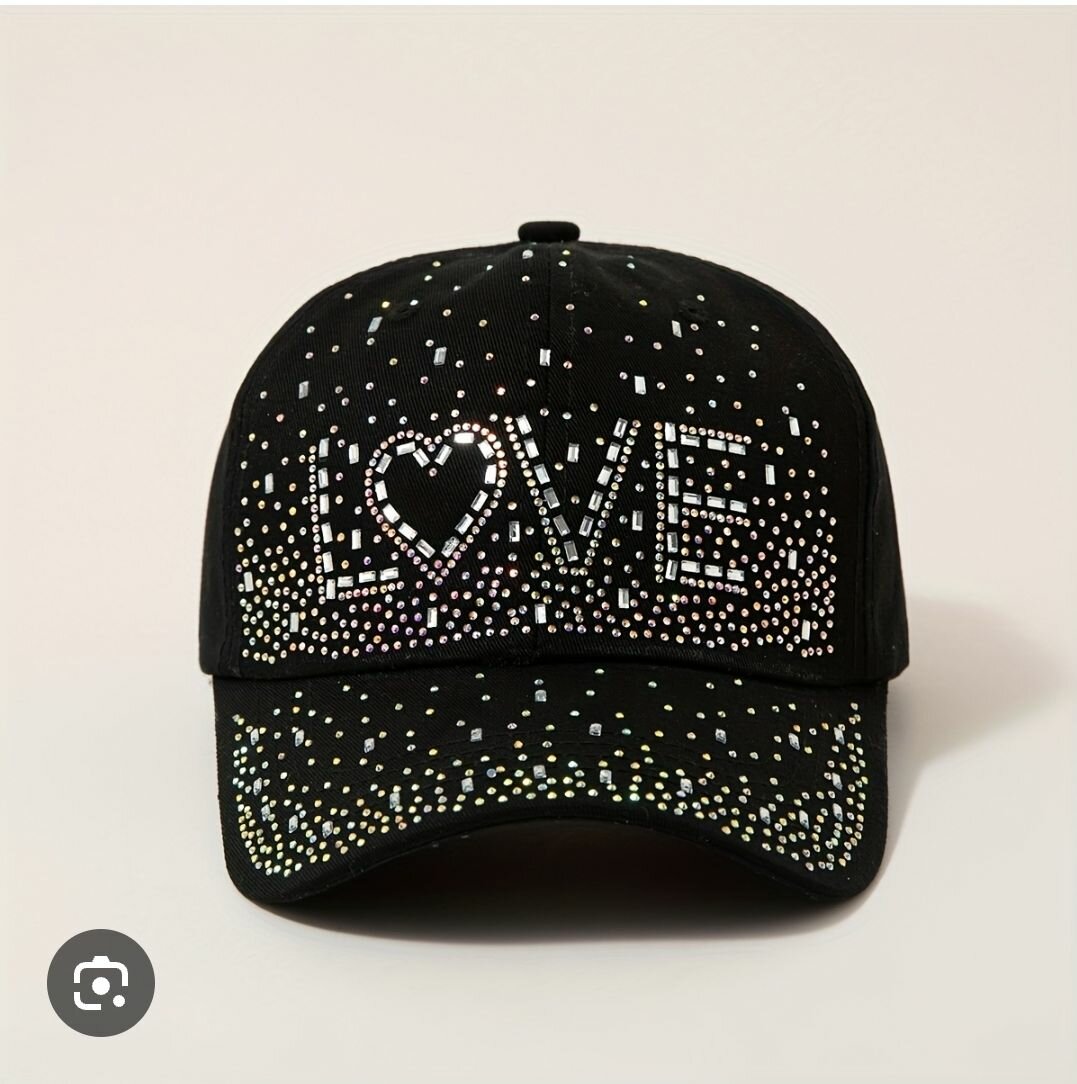 Ajoutez du style à votre tenue avec cette casquette noire étincelante ornée de strass scintillants formant le mot 'LOVE'. Confortable et chic, elle est parfaite pour toutes les occasions décontractées ou pour apporter une touche de glamour à votre look quotidien. Sa visière courbée protège du soleil tout en restant tendance.