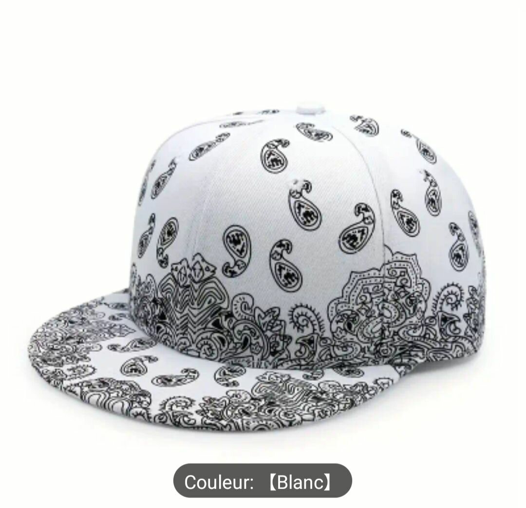 Adoptez un style urbain unique avec cette casquette snapback blanche ornée de motifs paisley. Parfaite pour compléter vos tenues décontractées ou ajouter une touche de style à votre look quotidien. Ajustable et confortable, elle est idéale pour toutes les tailles.