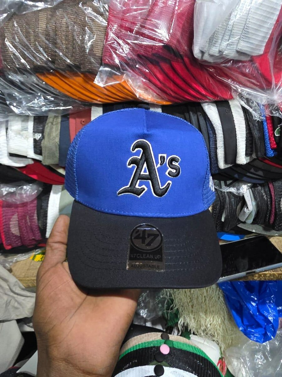 Ajoutez du style à votre tenue avec cette casquette trucker A's de couleur bleue. Idéale pour les fans de baseball ou pour un look décontracté, elle est à la fois tendance et confortable grâce à sa conception respirante.