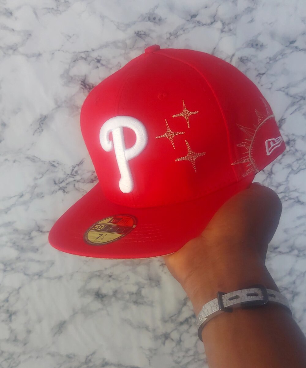 Casquette rouge ornée de perles