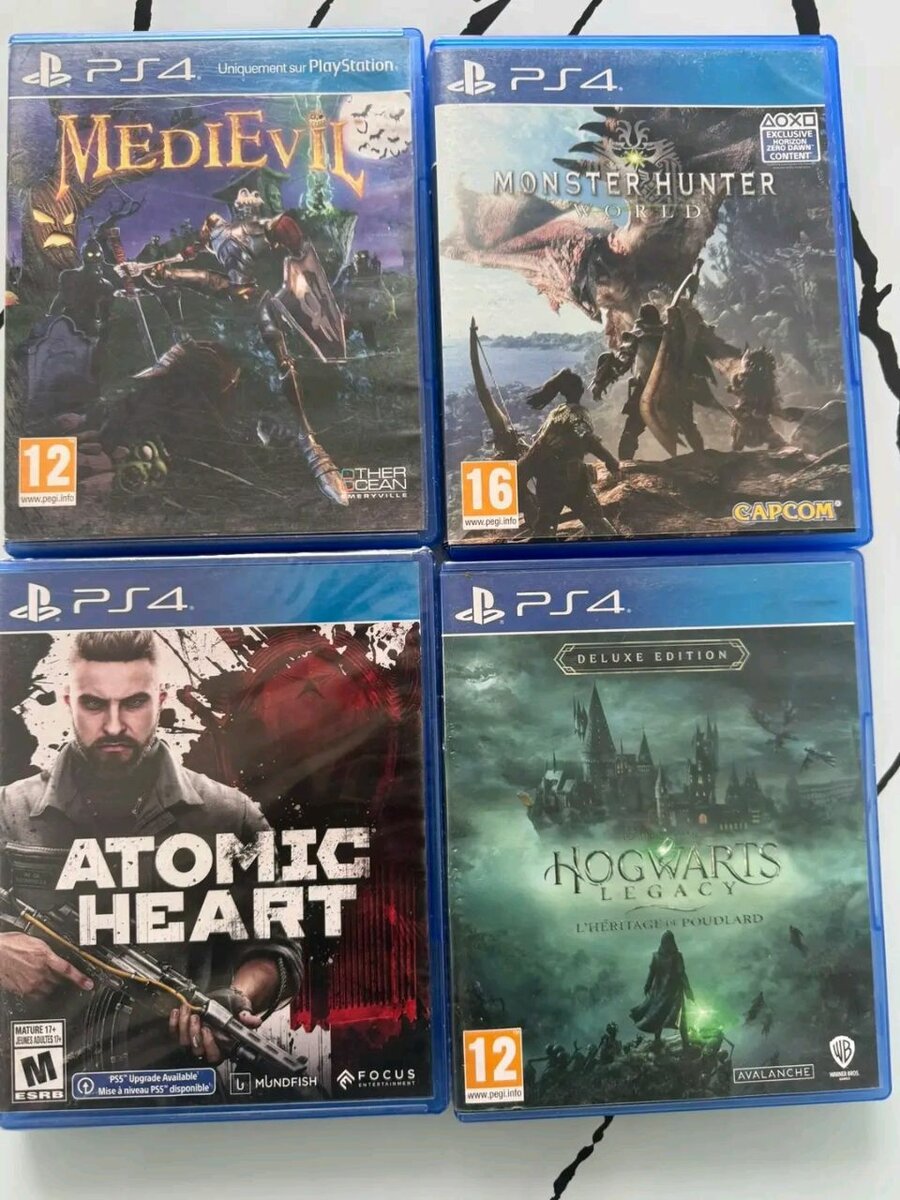 Explorez des mondes fantastiques avec notre pack de jeux PS4, comprenant "MediEvil", "Monster Hunter", "Atomic Heart" et "Hogwarts Legacy". Parfait pour les amateurs d'aventure et de RPG.