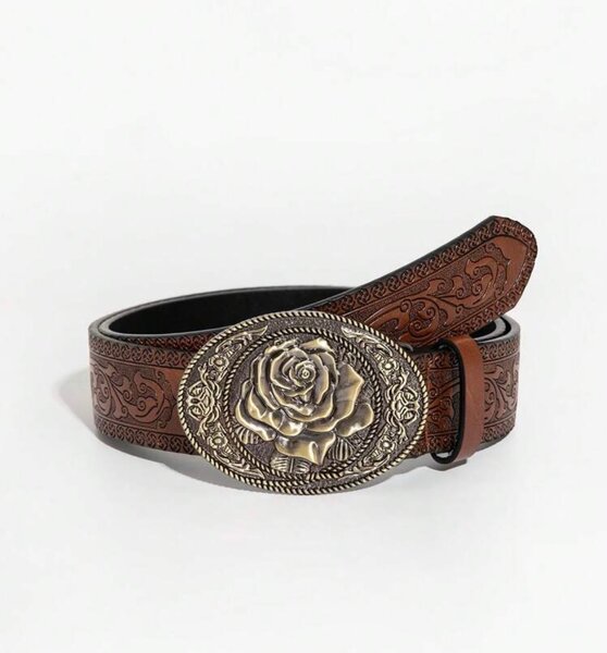 Ceinture en cuir gravée fleur