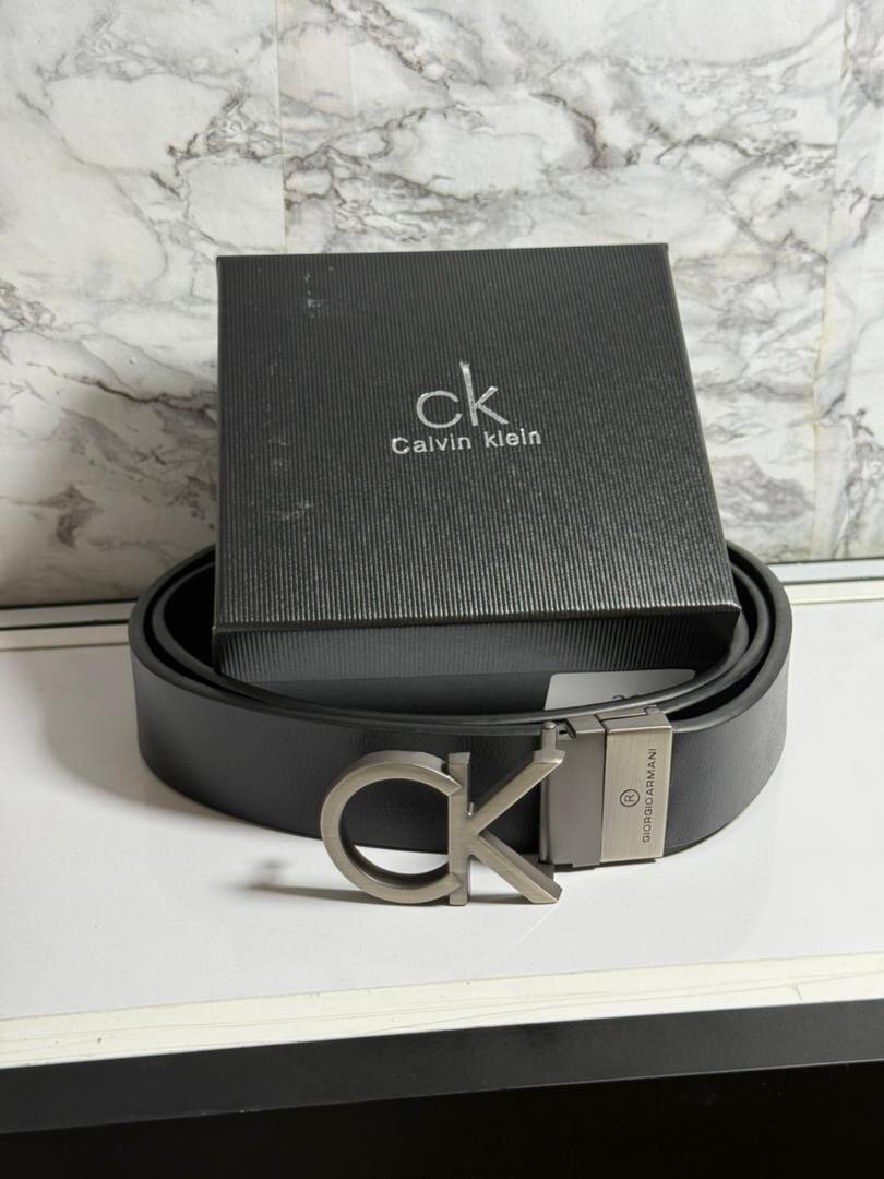 Ceinture en cuir noir avec boucle CK argentée de Calvin Klein. Élégante et robuste, elle complète parfaitement votre tenue. Idéale pour les hommes recherchant un accessoire de mode de qualité.