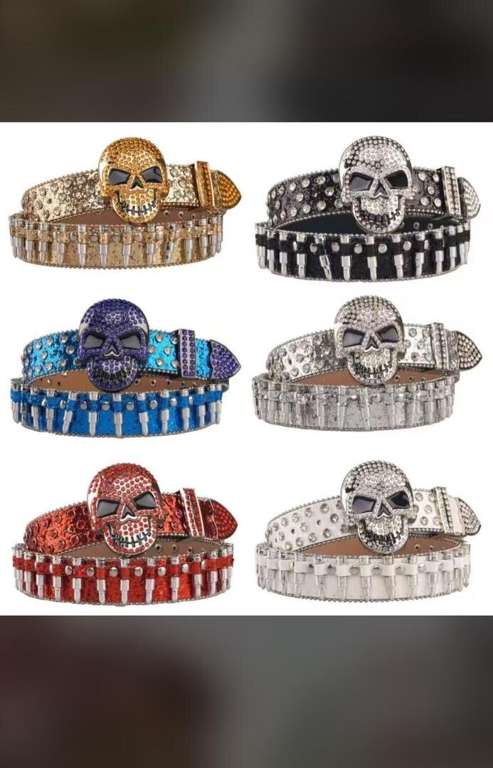 Soyez audacieux avec cette ceinture ornée d'un crâne scintillant. Idéale pour pimenter vos tenues décontractées ou rock, cette pièce en strass ajoutera une touche unique à votre style. Parfaite pour les amateurs de mode alternative, elle se décline en plusieurs couleurs vibrantes.