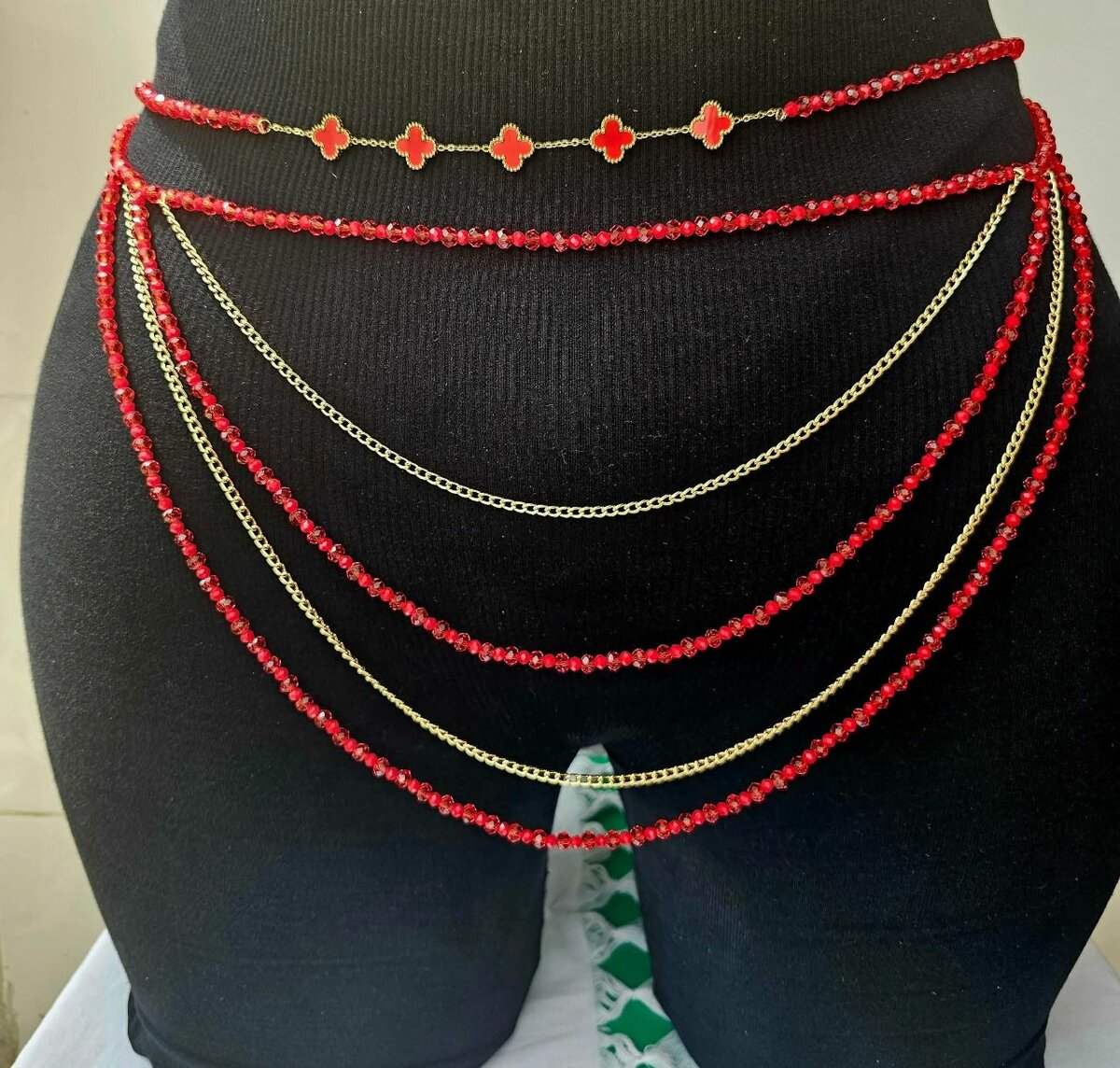 Ajoutez une touche glamour à votre tenue avec cette ceinture multi-rangs étincelante en perles dorées et chaînes. Parfaite pour les occasions spéciales, elle rehaussera vos robes ou jupes avec style.