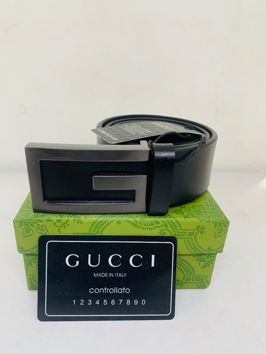 Découvrez cette élégante ceinture Gucci en cuir noir avec une boucle moderne. Parfait pour sublimer vos tenues, elle incarne le luxe et le style italien. Idéale pour une utilisation quotidienne ou pour des occasions spéciales. Offrez-vous une touche d'élégance intemporelle.
