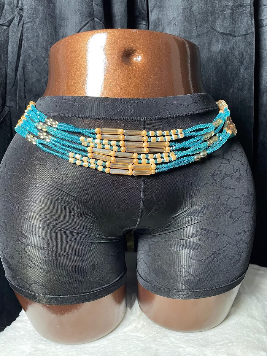 Sublimez votre look avec cette ceinture perlée ethnique. Confectionnée à la main avec des perles bleues et dorées, elle apporte une touche de couleur vibrante à votre tenue. Idéale pour les occasions spéciales ou pour ajouter du style à votre quotidien.