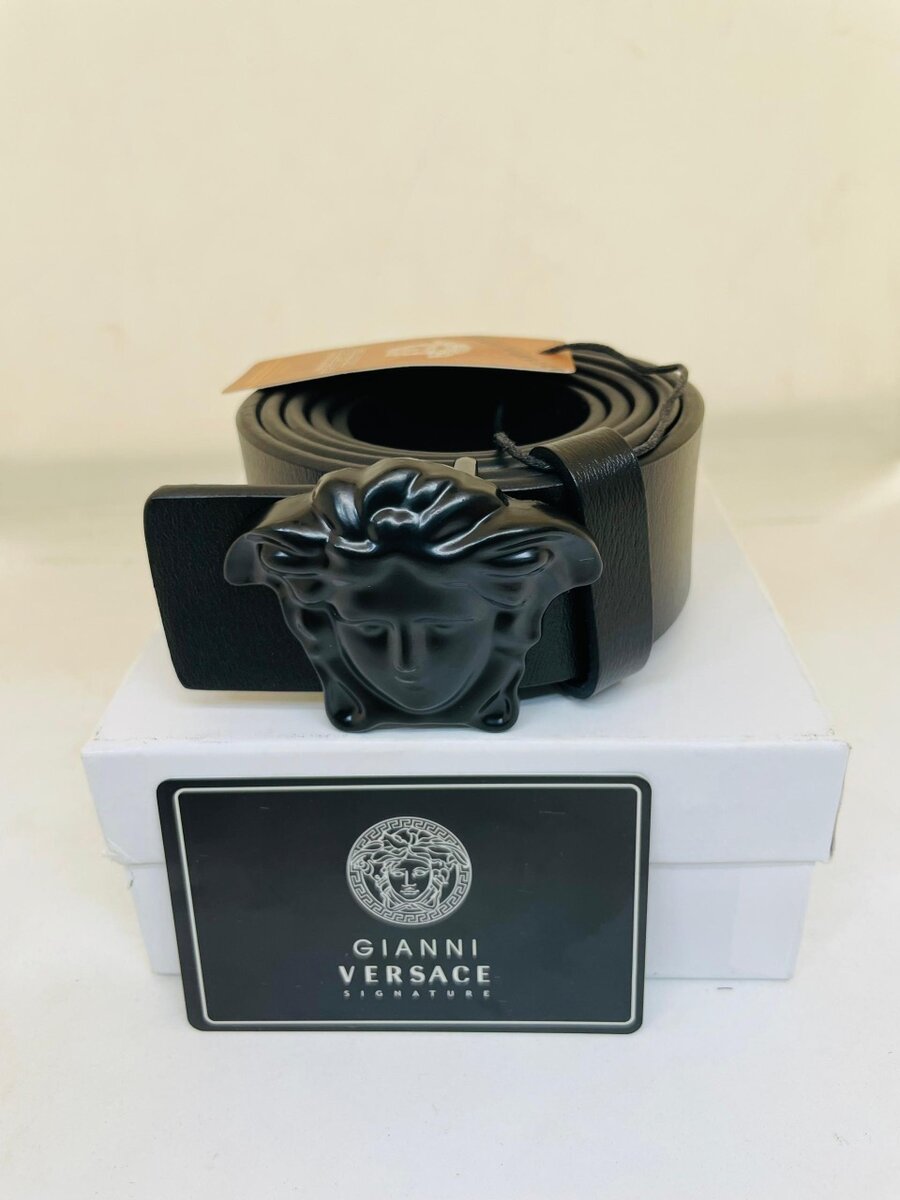 Découvrez la ceinture Versace avec boucle Méduse, alliant élégance italienne et design audacieux. Fabriquée en cuir de haute qualité, elle est parfaite pour rehausser n'importe quelle tenue. Idéale pour les amateurs de mode raffinée et luxueuse, elle ajoute une touche iconique à votre style quotidien.