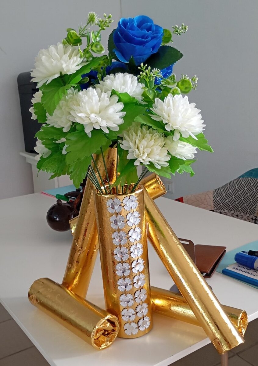 Centre de table fait maison avec bouquet de fleurs.