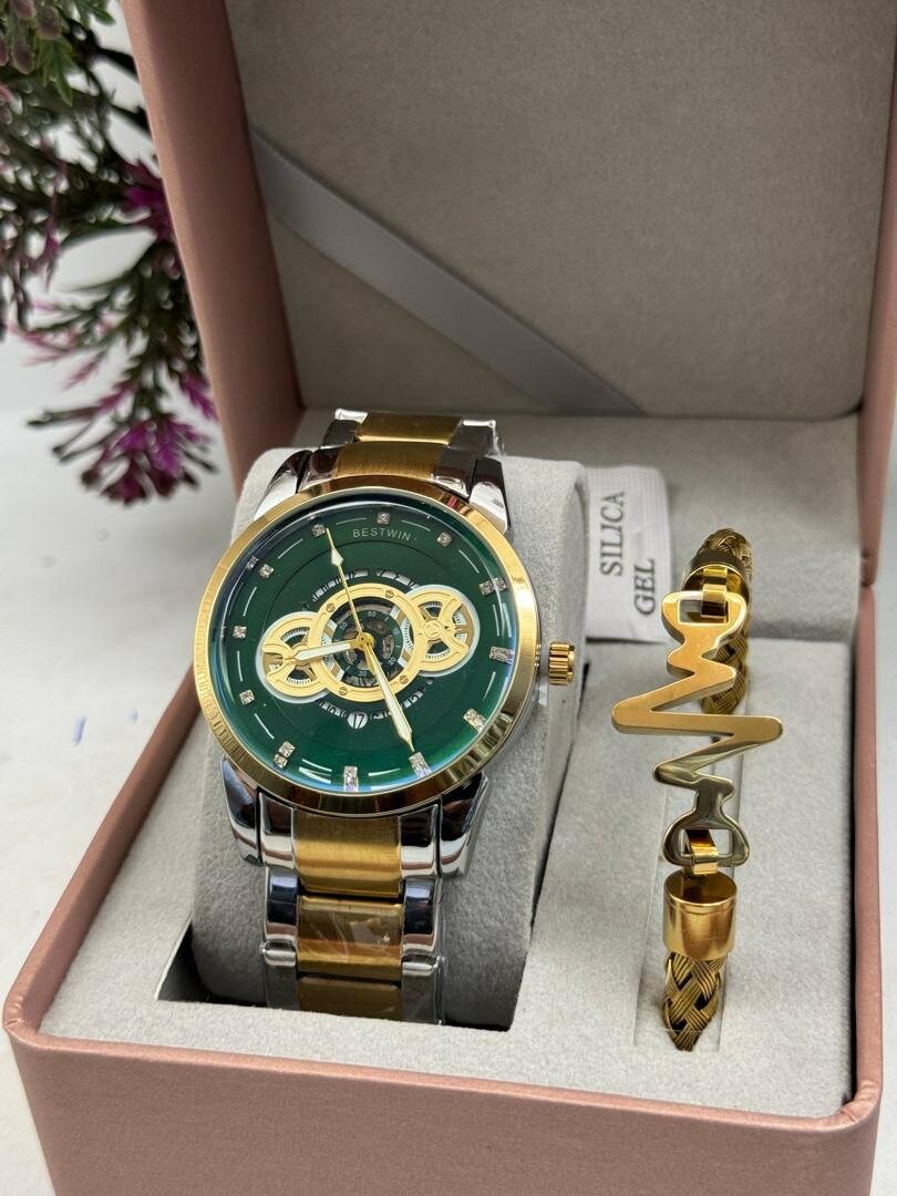 Chain watch with bangle set