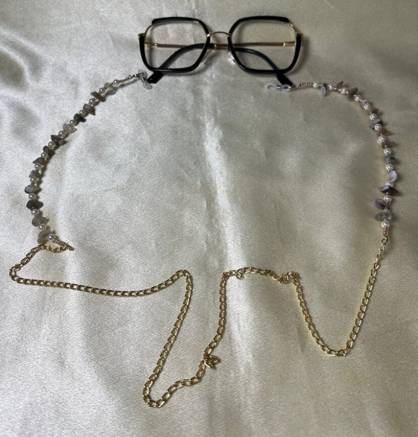 Élevez votre style avec cette chaîne à lunettes chic. Parfaite pour ajouter une touche d'élégance à vos montures, elle est ornée de perles délicates et d'une chaînette dorée robustes. Idéale pour un usage quotidien ou pour des occasions spéciales, elle assure un look sophistiqué tout en gardant vos lunettes en sécurité.