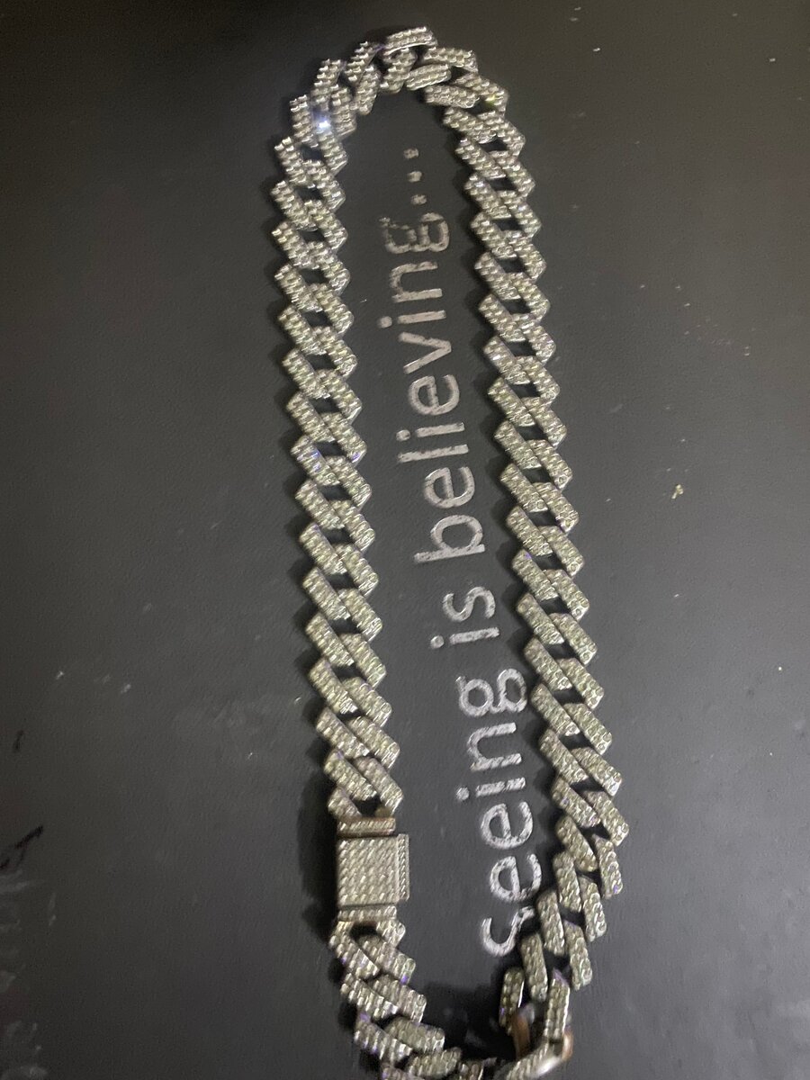 Ajoutez du style à votre look avec cette chaîne cubaine étincelante en strass. Parfaite pour les soirées, elle attire tous les regards avec son design audacieux et brillant. Idéale pour ceux qui cherchent à se démarquer.