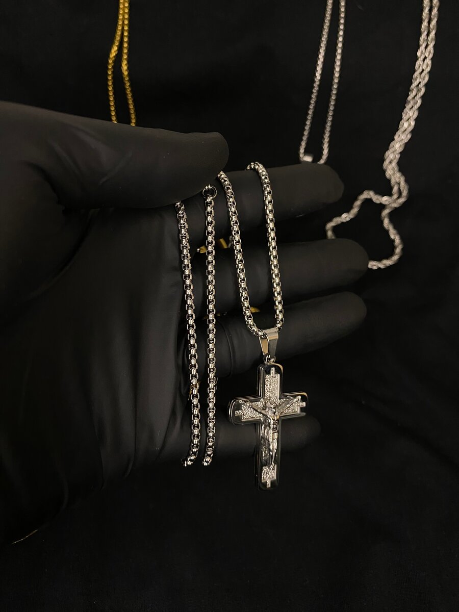 Chaîne croix en plaqué disponible couleur or et argent, simple élégant et pure