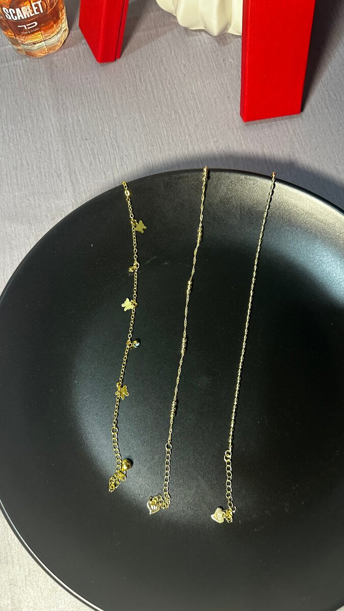Découvrez cette chaîne de cheville dorée avec pendentifs délicats, idéale pour ajouter une touche d'élégance à votre tenue. Parfaite pour l'été ou des occasions spéciales, elle s'adapte facilement à tout style vestimentaire.