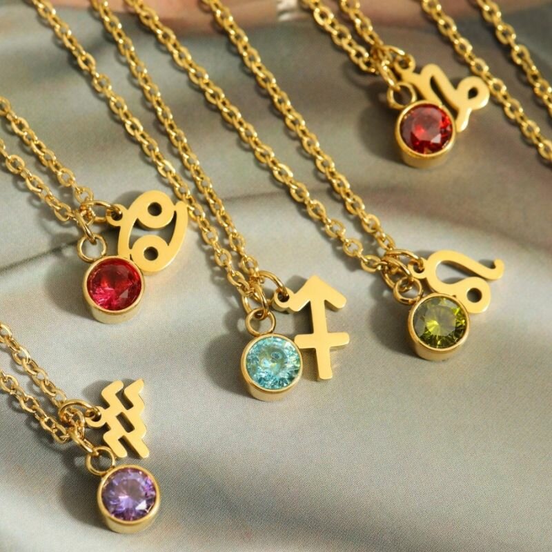Chaine en acier inoxydable de signe zodiaque avec Pierre de naissance