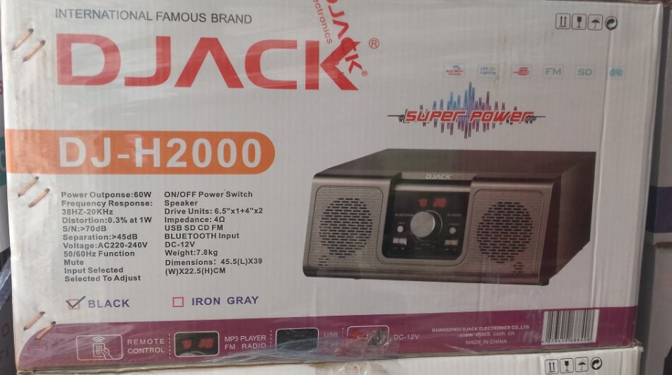 Découvrez une qualité sonore exceptionnelle avec la chaîne Hi-Fi stéréo DJACK DJ-H2000. Avec une puissance de 60W, cette chaîne offre des basses profondes et claires grâce à son système de haut-parleur 2.1. Profitez d'une connectivité Bluetooth, USB et radio FM pour écouter vos musiques préférées où vous voulez. Idéal pour la maison ou les petites fêtes, le DJ-H2000 vous assure une expérience audio immersive.