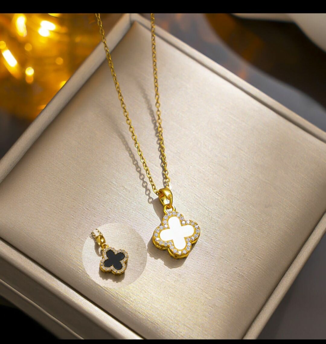 Chaine trèfle double face or plaqué