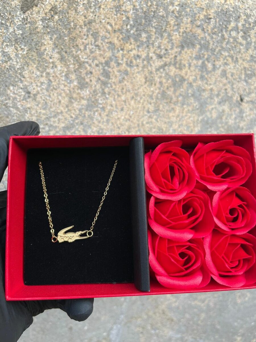 Élégant collier doré en forme d'oiseau, présenté dans une boîte cadeau avec roses en mousse. Parfait pour un cadeau romantique ou une touche de luxe au quotidien. Séduisant et symbolique.