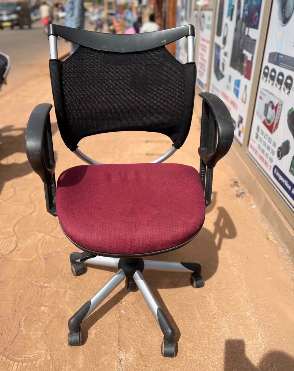 Chaise de bureau confortable avec assise rouge et dossier en maille noire. Réglable en hauteur, sur roulettes pour une mobilité parfaite. Idéale pour les bureaux modernes.
