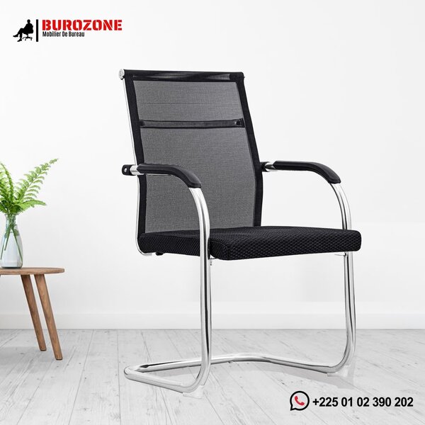 Profitez du confort et du design élégant de cette chaise de bureau moderne. Dotée d'un cadre métallique solide et d'un revêtement en cuir noir, elle est parfaite pour un usage professionnel. Idéale pour les bureaux, elle offre un soutien ergonomique grâce à son dossier et ses accoudoirs. Une touche de sophistication pour votre espace de travail.
