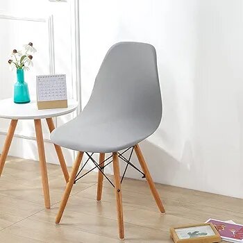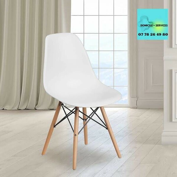 Chaise moderne avec siège en plastique bleu et pieds en bois, idéale pour la cuisine ou la salle à manger.