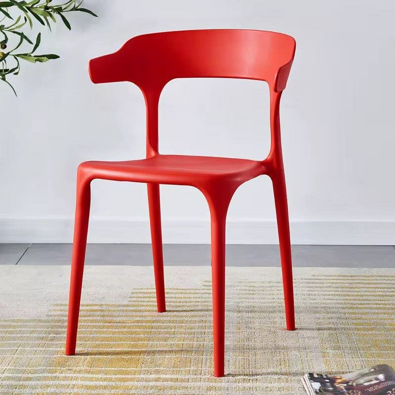 Découvrez cette chaise moderne en plastique rouge, idéale pour ajouter une touche de couleur à votre intérieur. Parfaite pour la salle à manger, le bureau ou le salon. Durable et facile à nettoyer.