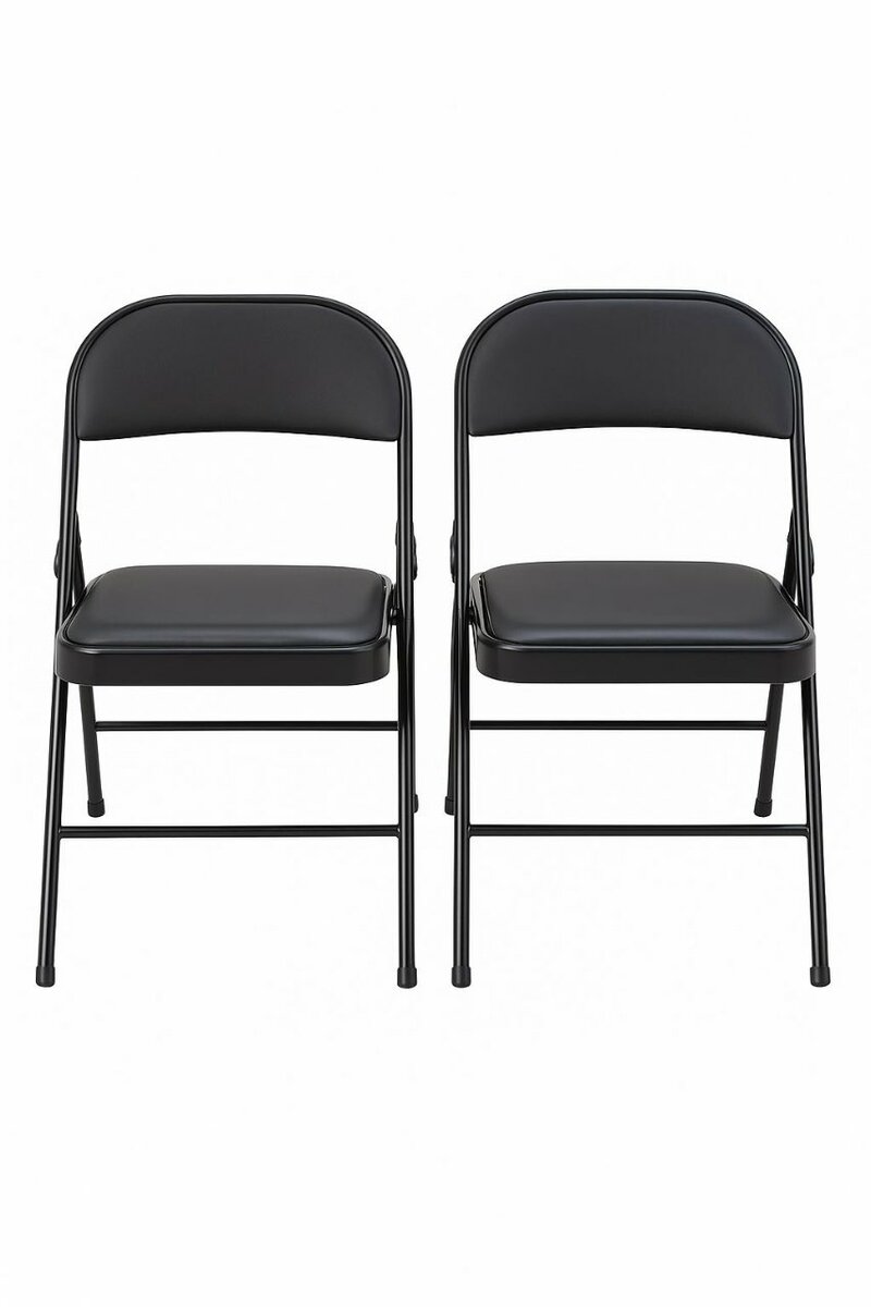Set de 2 chaises pliantes noires, idéales pour le bureau ou les événements. Compactes et faciles à ranger, elles offrent confort et design moderne.